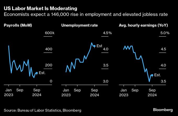 10月4日の雇用統計は、11月6、7日の米連邦公開市場委員会(FOMC)前に出てくる労働市場の指標としては、最近の労働争議の影響を受けない最後の数字になる可能性がある。米航空機メーカー、ボーイングの労組は9月半ばにスト入りし、大西洋岸とメキシコ湾岸の港湾労働者も10月1日からのストを予告している。