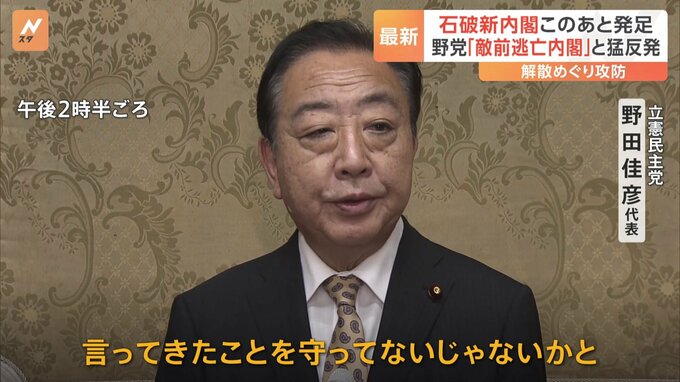 自民党の石破総裁が第102代総理大臣に指名されました。今夜、新内閣を発足させますが、野党は石破氏の衆議院解散をめぐる発言について「言っていたことが違う」と猛反発しています。額賀福志郎衆院議長「内閣総理…