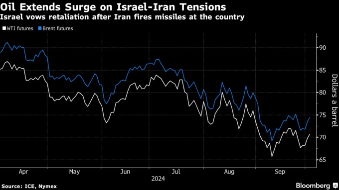 原題:Oil Extends Surge as Israel Vows Retaliation After Iran Strike(抜粋)