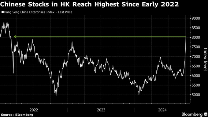 こうした急上昇を受け、中国株は今年これまでのところ主要市場で最良のパフォーマンスを記録。中国株は、経済の不振と長引く不動産市場の低迷を背景に、ここ数年間の大半にわたって低調だったが、著しい変化が訪れている。