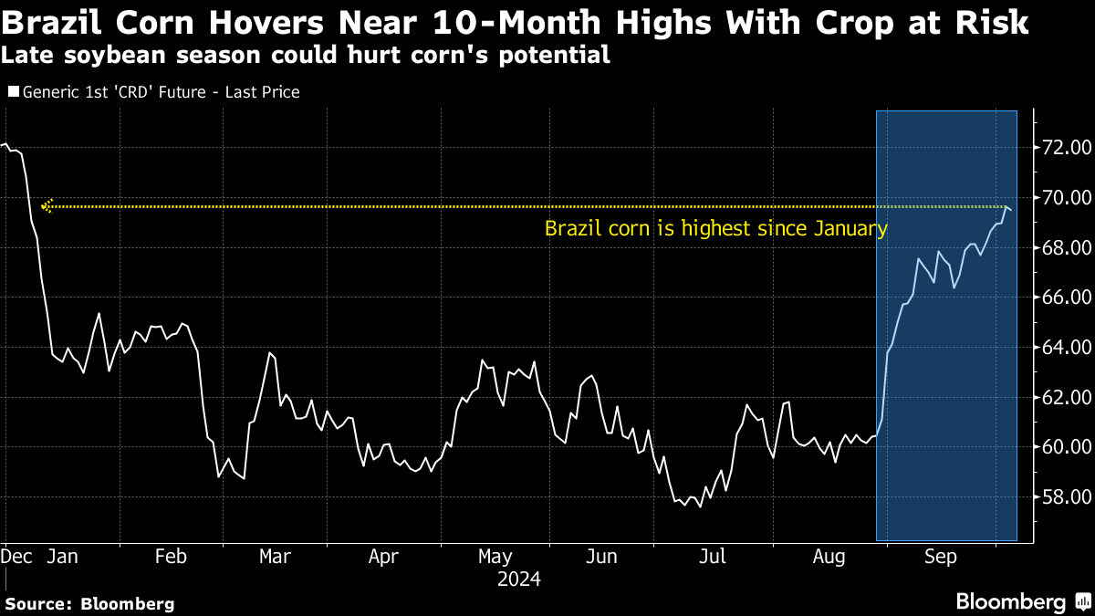 ブラジルのトウモロコシ価格は5週間にわたる上昇局面の後、1月初めの高値圏で推移している。今シーズンのトウモロコシの収穫は、大豆の作付けの大幅な遅れで打撃を受ける恐れがある。さらに主要生産地域の降雨不足で大豆の収穫も遅れており、大豆の収穫後に作付けされるトウモロコシは影響を被りそうだ。ブラジルは世界2位のトウモロコシ供給国。
