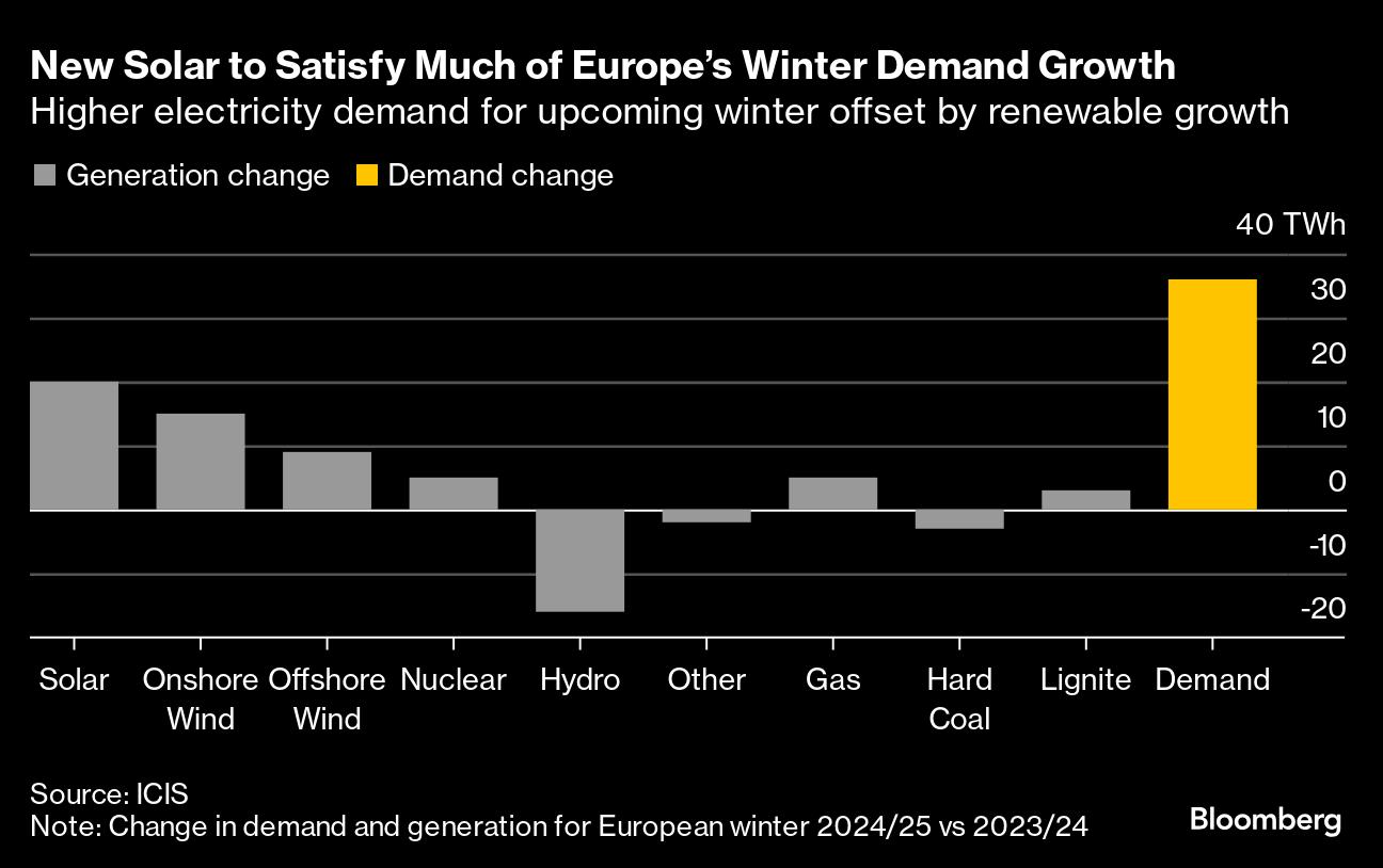 欧州では太陽光発電容量が大幅に拡大しており、電力需要の伸びが見込まれる冬の間も太陽光発電でかなりの部分を賄える見通しだ。