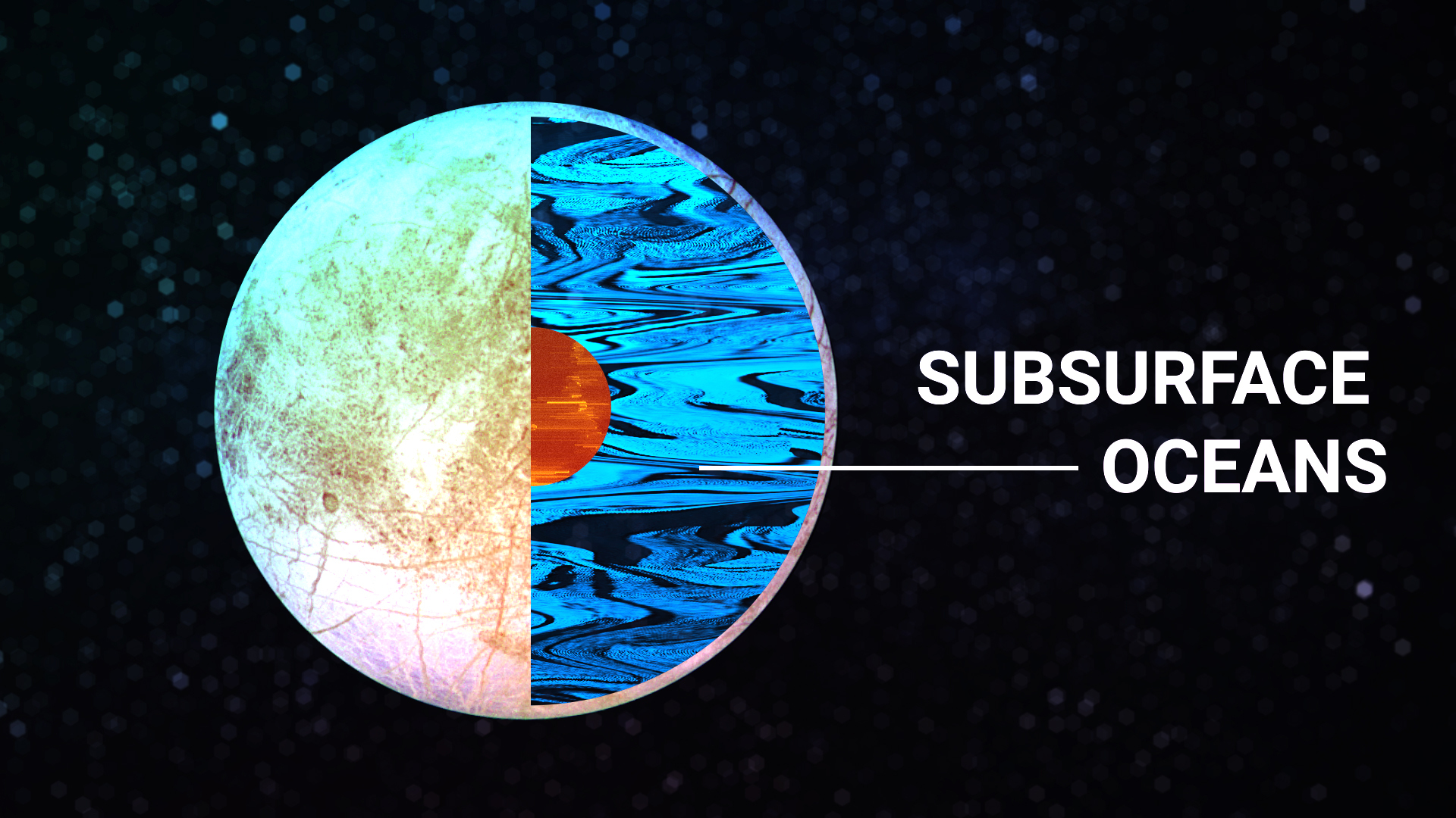 1989年に打ち上げられたNASAの木星探査機ガリレオは、エウロパを12回程度通過し、磁場を測定。この結果、厚さ10-15マイル(約16-24キロメートル)の氷の層の下に水域があることが示された。