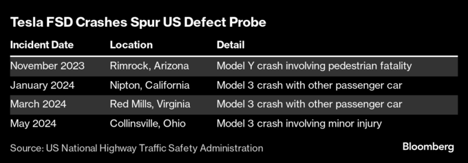 (ブルームバーグ):電気自動車(EV)メーカー、米テスラが「FSD(フルセルフドライビング)」として販売する一部自動運転システムのEVが1件の死亡事故を含む、複数の衝突事故を起こしたことを巡り、米連邦当局はこのシステムに欠陥がないかどうか、調査を開始した。