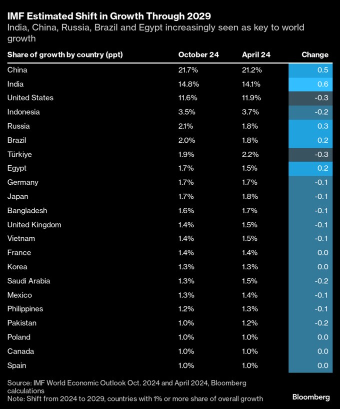 原題:IMF Sees Growth Shift Toward BRICS, Away From G-7 in New Outlook(抜粋)