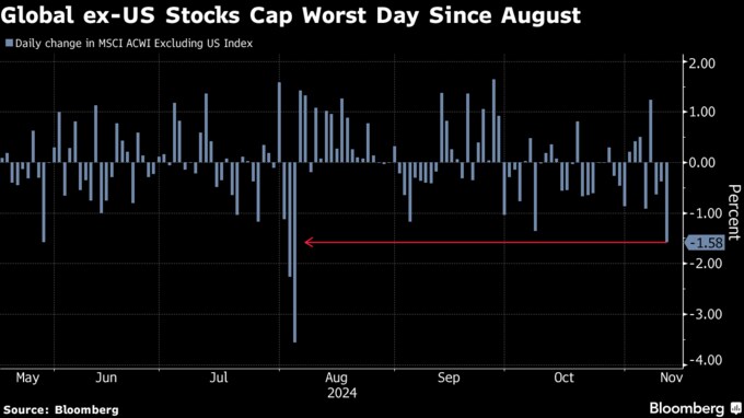 (ブルームバーグ):トランプ前米大統領の大統領選勝利を受け、米国株は最高値を更新し、ドルは2年ぶり高値を付けた。しかし、これは世界の他の国や地域にとっては全く良いニュースではない。