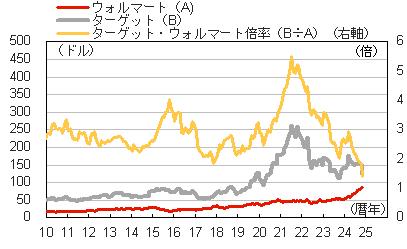 ターゲットとウォルマートの株価の相対倍率はインフレ率の先行指標