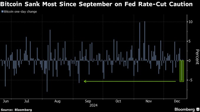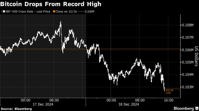原題:Bitcoin Retreats From Record High After Fed Cools Risk Appetite、Bitcoin Drops Below $100,000 as Fed Policy Outlook Saps Crypto(抜粋)