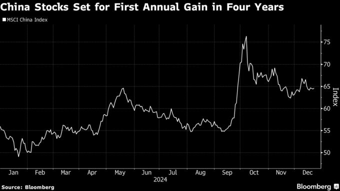 ゴールドマン・サックスはMSCI中国指数について2025年の利益成長率を7%、26年は10%と予測している。同指数は今年15%余り上昇しており、年間では4年ぶりの上昇となる勢いだ。
