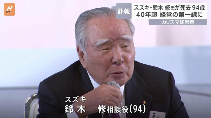 40年以上にわたって自動車メーカー「スズキ」の社長や会長を務めていた鈴木修氏が亡くなったことがわかりました。スズキによりますと、鈴木修相談役は25日、浜松市内の病院で亡くなったということです。94歳でした…