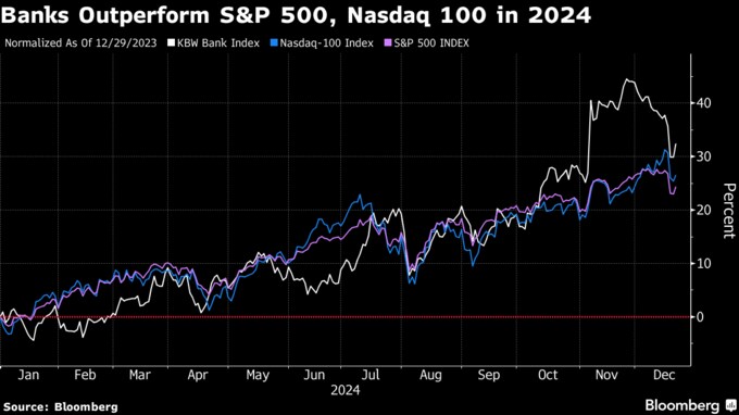 トランプ次期政権下での規制緩和や減税の波が実現すれば、米金融当局が予想より長期にわたり金利を高めに維持したとしても、銀行株にはまだ上昇余地が十分にあるとの見方が多い。