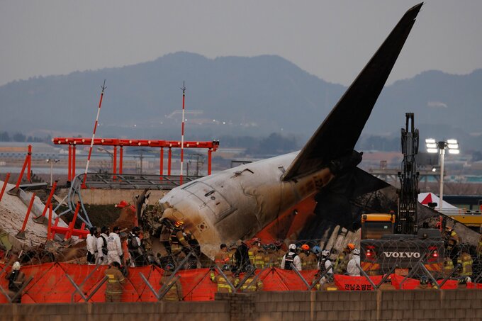 韓国国土交通省の当局者によれば、チェジュ航空機が務安空港に接近した際、パイロットの1人がバードストライクを報告し、緊急事態を知らせるメーデーを発信した上で、着陸をやり直す手順を始めた。同機はその後引き返し、反対方向から着陸を試みたが、進路上には滑走路の端に壁があった。