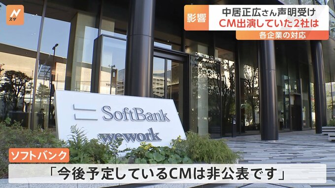 中居正広さんをCMに起用する各社の対応です。ソフトバンクは中居さんをCMに起用していましたが、現在はCM動画が公式サイトから削除されています。そのうえで「今後予定しているCMは非公表です」とコメントしました…