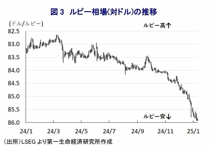 よって、足下のインド金融市場は通貨、株式、債券のすべてに売り圧力が掛かる『トリプル安』に直面していると捉えられる。