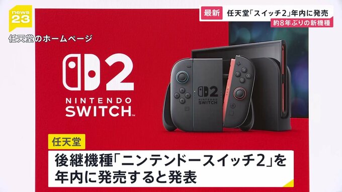 任天堂は、ゲーム機「ニンテンドースイッチ」の後継機種「ニンテンドースイッチ2」を年内に発売すると発表しました。新機種の発売は、およそ8年ぶりです。価格などの詳細は明らかにしていませんが、現行のスイッチ…