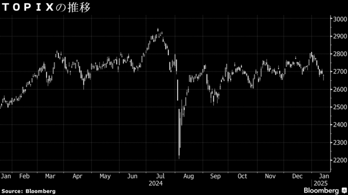 (ブルームバーグ):1月4週(20ー24日)の日本株は先行きの不透明感が次第に薄らぎ、底堅く推移する見込み。日本銀行の利上げへの警戒に加え、米国新政権の関税政策による悪影響への懸念があり、様子見ムードが広がりやすい。ただ、週後半は影響を織り込みながら見直し買いが優勢になる可能性がある。