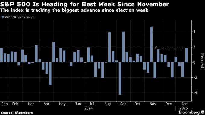 最近のデータはインフレ鈍化を示唆しており、利下げ期待が再び高まっている。S&P500は週間ベースの上昇率が11月以来の高水準となる勢いだ。