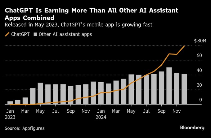 原題:Mobile AI Apps Are Now a $2 Billion Market Led by OpenAI(抜粋)
