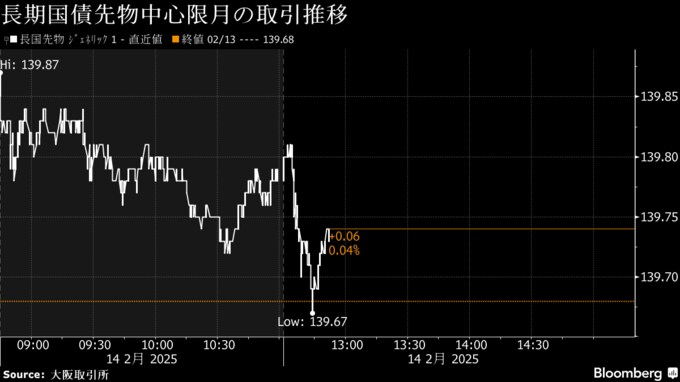 (ブルームバーグ):14日の債券相場は小幅高。米国長期金利の大幅低下を受けた買いが優勢だ。財務省がこの日実施した5年利付国債入札は無難な結果となったが、相場を押し上げる要因にはなっていない。