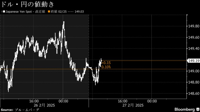 (ブルームバーグ):27日の東京外国為替市場の円相場は1ドル=149円台前半に下落。トランプ米大統領による関税政策が米国のインフレを促すとの根強い見方や売られ過ぎ反動でドルがやや買い戻されている。
