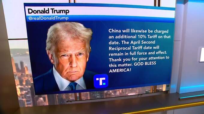 トランプ氏はカナダとメキシコから「容認できない、非常に高い水準」で違法薬物がなお流入していると主張し、両国に対する関税を3月4日に発動すると明らかにした。その上で「中国も同様に、その日に追加で10%の関税が課される見通しだ」と述べた。