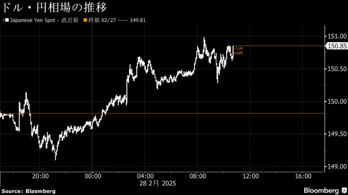 PCE統計発表後、外国為替市場ではドルが堅調を維持。円は対ドルで一時151円ちょうど近辺まで下落したが、その後は150円台前半から後半での推移となった。