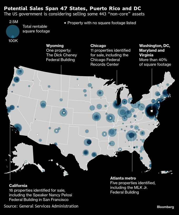 (ブルームバーグ):米政府は47州、コロンビア特別区、プエルトリコにまたがる不動産ポートフォリオの売却を検討している。連邦職員に加え、連邦機関が入居する建物の削減も目指すトランプ米大統領の取り組みの一環だ。