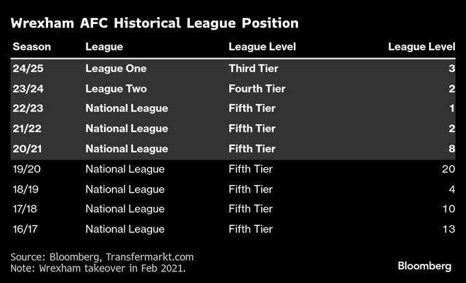 原題:Ryan Reynolds’ Wrexham Football Club Valuation Rises 4,900%(抜粋)