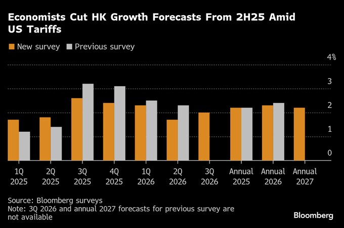 (ブルームバーグ):エコノミストは7-12月(下期)のシンガポールと香港の成長見通しを引き下げた。中国の輸出品に対するトランプ米政権の高関税で不確実性が増したことを織り込んだ。