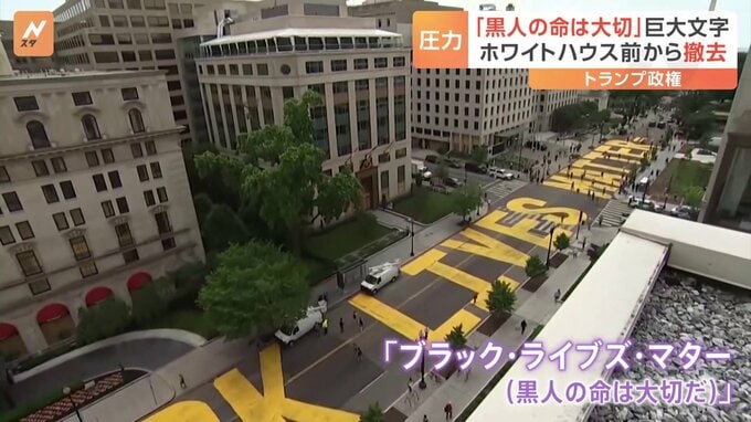 アメリカ・ワシントンでは、地面に描かれた黒人差別の解消を訴える「ブラック・ライブズ・マター=黒人の命は大切だ」の巨大文字が撤去されることになりました。背景には政権与党からの圧力があるようです。ホワイ…