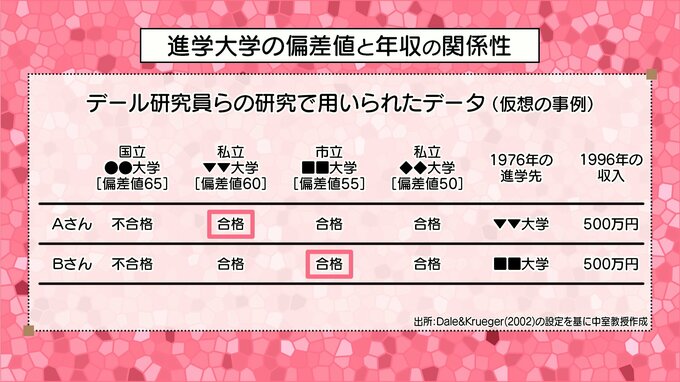 「大学に偏差値って当然あるわけですよね。高い大学、低い大学とありますと。それぞれの大学に進学した人たちをその後ずっと追跡して将来の収入がどうなってるかっていうのを見たっていう研究なんです」