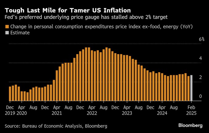 2月のPCE統計では、2025年の個人消費が勢いを欠くスタートを切った後、安定した様子が示されそうだ。1月に過去1年で最も高い伸びを示した個人所得は、前月比0.4%増と鈍化する見通しだ。一方、インフレ調整後の実質PCEは、前月比で約4年ぶりの大幅な減少となった後、2月は増加が見込まれる。