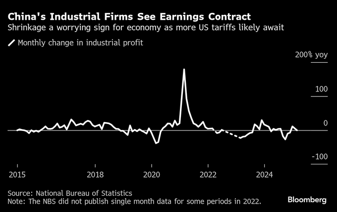 原題:China’s Industrial Profits Shrink in Warning Sign for Economy(抜粋)