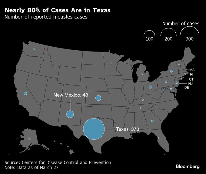 原題:US Measles Cases Jump 28% in a Week to 483; Texas Now at 400(抜粋)