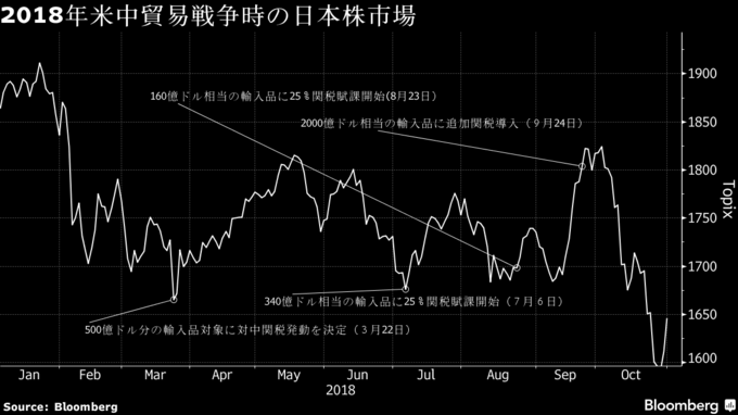 目先の株価反発を予想する大和証券の木野内氏も、関税は「長い目で見れば良いわけはない」と強調する。18年も「株価は結局10月にピークアウトし、日本も景気後退に入った」とし、今年後半には関税の負の側面がより鮮明になることで日本株は下落すると予想している。