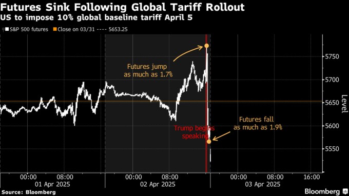 原題:US Stock Futures Tumble as Trump Upends Global Trading Order(抜粋)