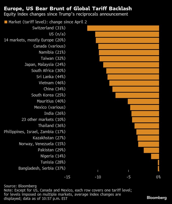 トランプ氏は2日、米国への全輸出国に基本税率10%を賦課し、対米貿易黒字の大きい約60カ国・地域には上乗せ税率をそれぞれ適用すると発表。世界一律10%の関税は5日に発動。上乗せ税率は9日に適用される。