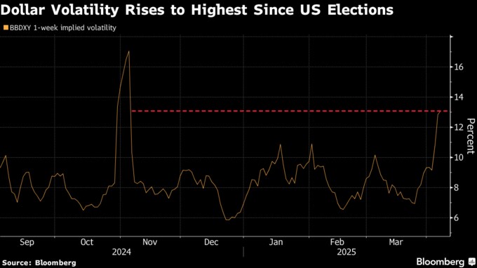 ブルームバーグ・ドル・スポット指数は7日に0.6%上昇。同日、トランプ大統領は中国に対し50%の追加関税を警告し、日本との関税を巡る交渉に言及。同指数は先週のトランプ氏の関税発表後に2022年以来の大幅安を記録したが、そこから急反発した。