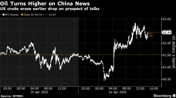 ウェスト・テキサス・インターミディエート(WTI)先物はバレル当たり62.50ドル近くで終えた。中国が協議に応じる用意を示唆したことが買いを誘った。上昇は過去4営業日で3回目。