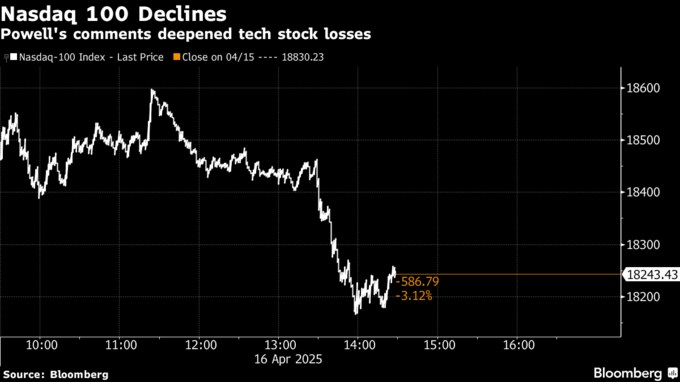 US Stocks Slump as Powell Remarks Add to Chipmakers’ Woes