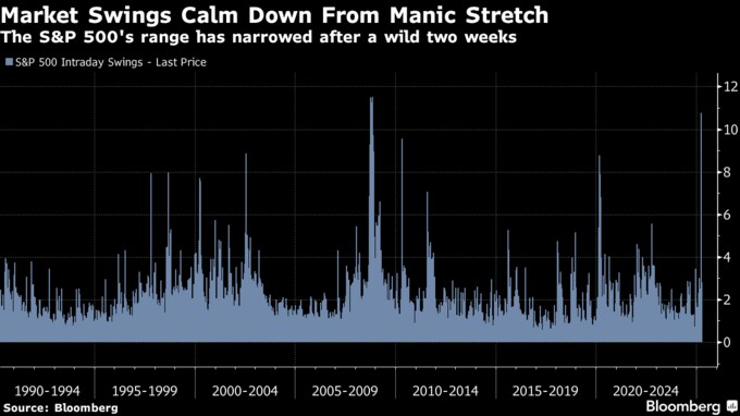 新型コロナウイルスのパンデミック(世界的大流行)初期や2008年の信用危機以来見られなかったような10%超の変動率を記録したS&P500種株価指数は今週、不気味な静けさを取り戻した。