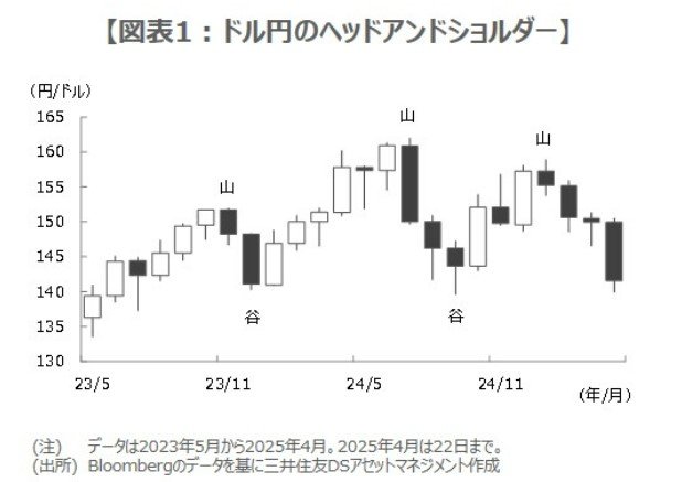 為替市場では3つの山と2つの谷で形成されるドル円の「ヘッドアンドショルダー」が話題になっている