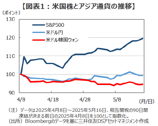 市場参加者の間には、米中の関税合戦の過程で対中包囲網の構築に非協力的だった一部の同盟国に対して、「米国が為替による報復に踏み切るのではないか」とのうがった見方もあるようで、そうした「思惑」に市場が身構えているように見受けられます。