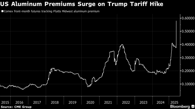 原題:US Aluminum and Steel Prices Surge as Trump Doubles Tariffs (1)(抜粋)