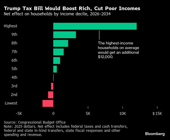 (ブルームバーグ):米下院を先月通過したトランプ大統領の大型税制・歳出法案は、貧困層に経済的な打撃を与える一方で、高所得層には恩恵をもたらしそうだ。米議会予算局(CBO)の新たな分析で分かった。