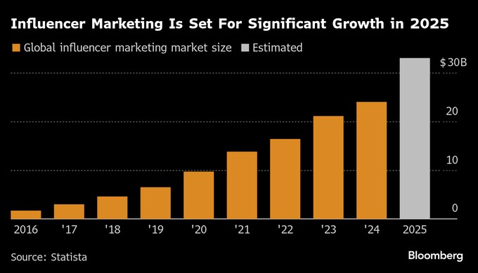 統計データプラットフォーム、Statistaのデータによると、インフルエンサーによるマーケティングの世界市場は、2024年から25年にかけて36%成長し、330億ドル(約4兆7600億円)に達する見通し。