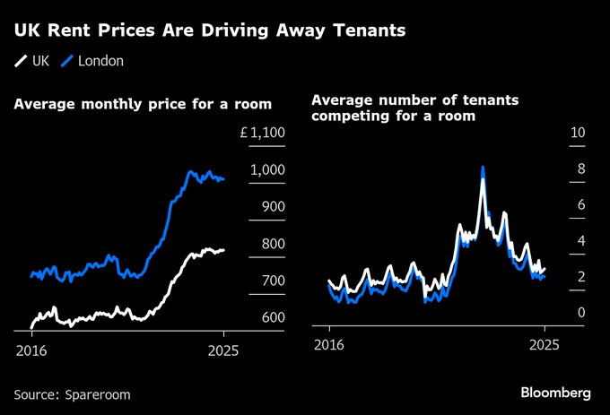 雇用主はエントリーレベルの職種を減らしており、ホスピタリティー産業では最近の増税が採用を鈍らせている。ルームシェア探しの減少は、こうした状況で悪化する若年層の就職環境を反映している恐れがある。