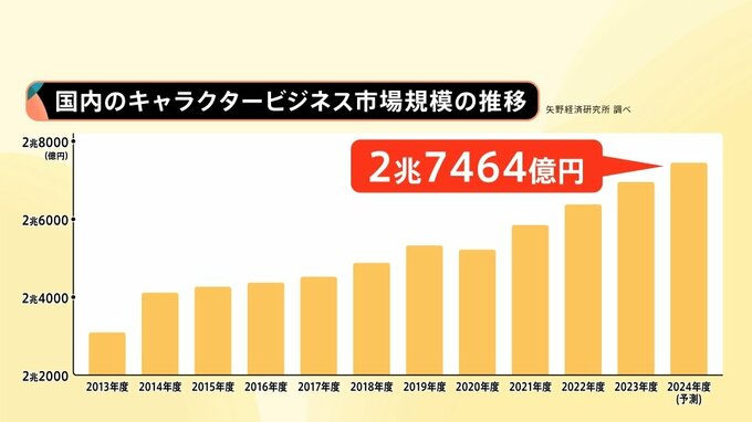 「矢野経済研究所」が発表している「国内のキャラクタービジネスの市場規模の推移」を見ると、2024年度で2兆7464億円ということで、(この金額は)大阪関西万博の経済効果の規模とほぼ同じぐらいだということなんです。