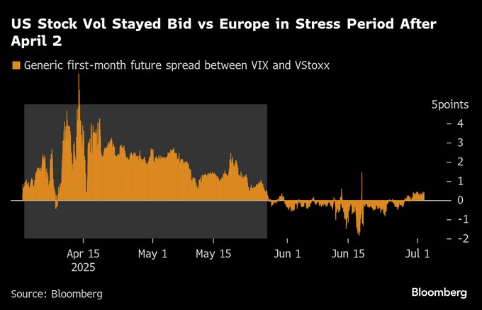 4月には、同様のガンマ戦略が「解放の日」におけるインプライド・ボラティリティーとリアライズド・ボラティリティーの急上昇によって大きな利益を生んだ。当時、ドイツのDAX指数における「割安なガンマ」を推奨していたバンク・オブ・アメリカ(BofA)のストラテジストらは現在、ユーロ・ストックス50指数での同様のポジションを推奨している。一方、ロウ氏は今回は同様の結果を期待していないとの見方を示している。