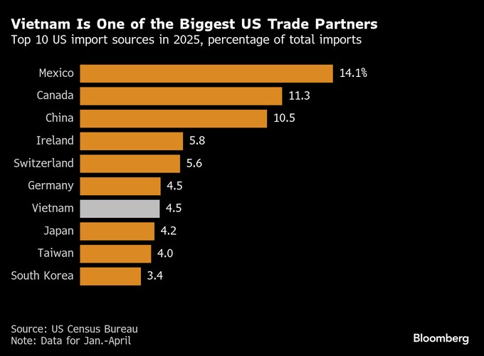 トランプ大統領が貿易合意を発表したのは英国に次いでベトナムが2例目だった。その後、トランプ氏は8月1日から最大50%の関税を課すと通知する書簡を対象の貿易相手国に次々と出している。